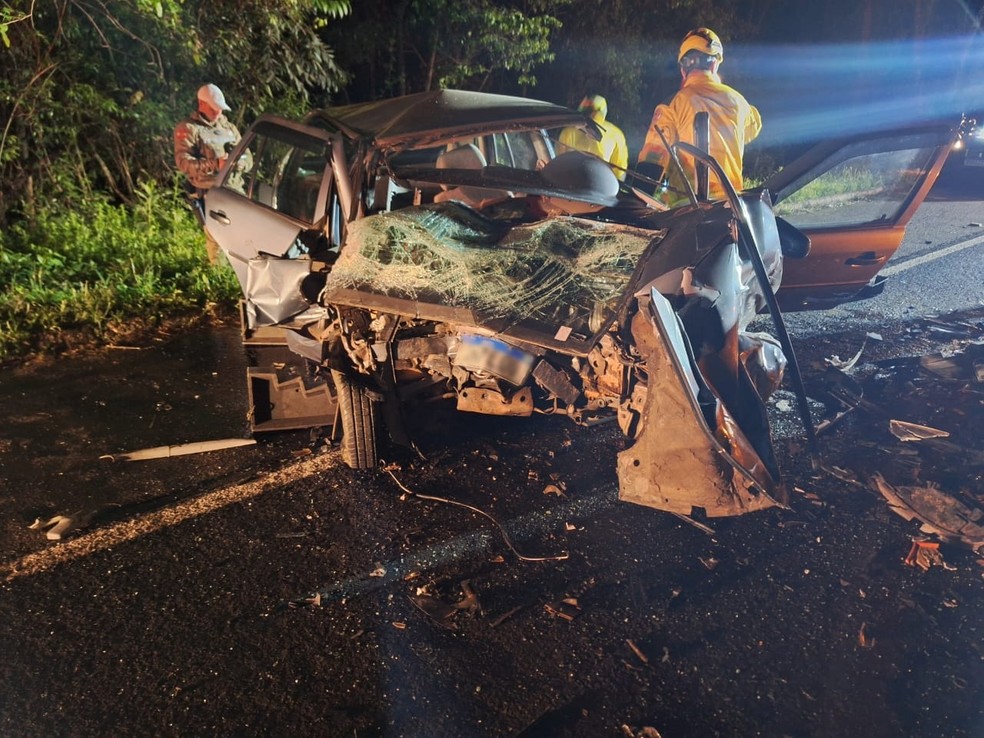 Colisão frontal em SC: motorista morre e carro é totalmente destruído