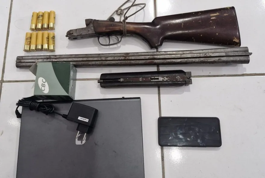 Com o suspeito, foram encontradas uma arma de fogo, cartuchos intactos, um notebook e um celular. Esses materiais, conforme a polícia, deverão contribuir para o avanço das investigações.