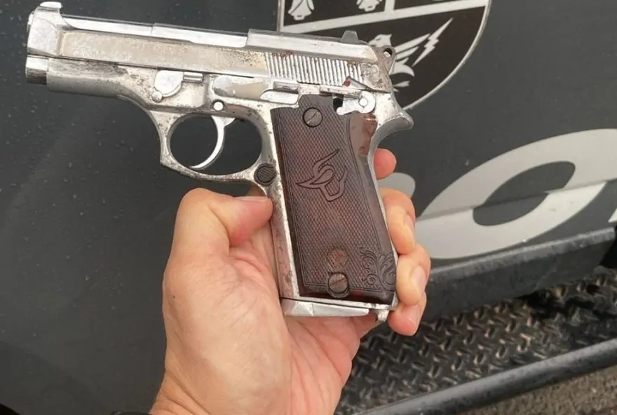 1 de 2 Baep encontra uma pistola e uma metralhadora em posse de suspeito que