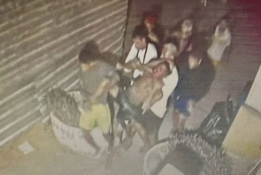 Câmera registrou momento que a vítima foi levada à força por, ao menos, sete