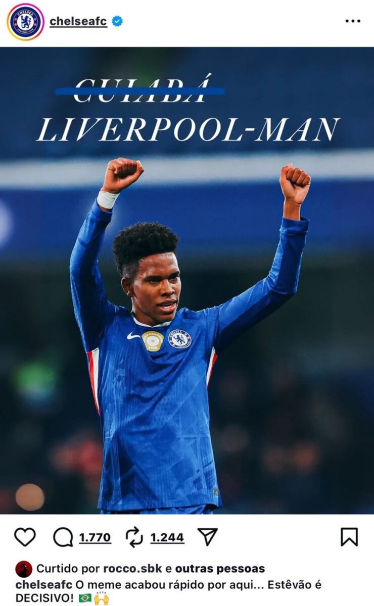 Estêvão decide clássico com Liverpool e Chelsea brinca com meme do Cuiabá-Man
