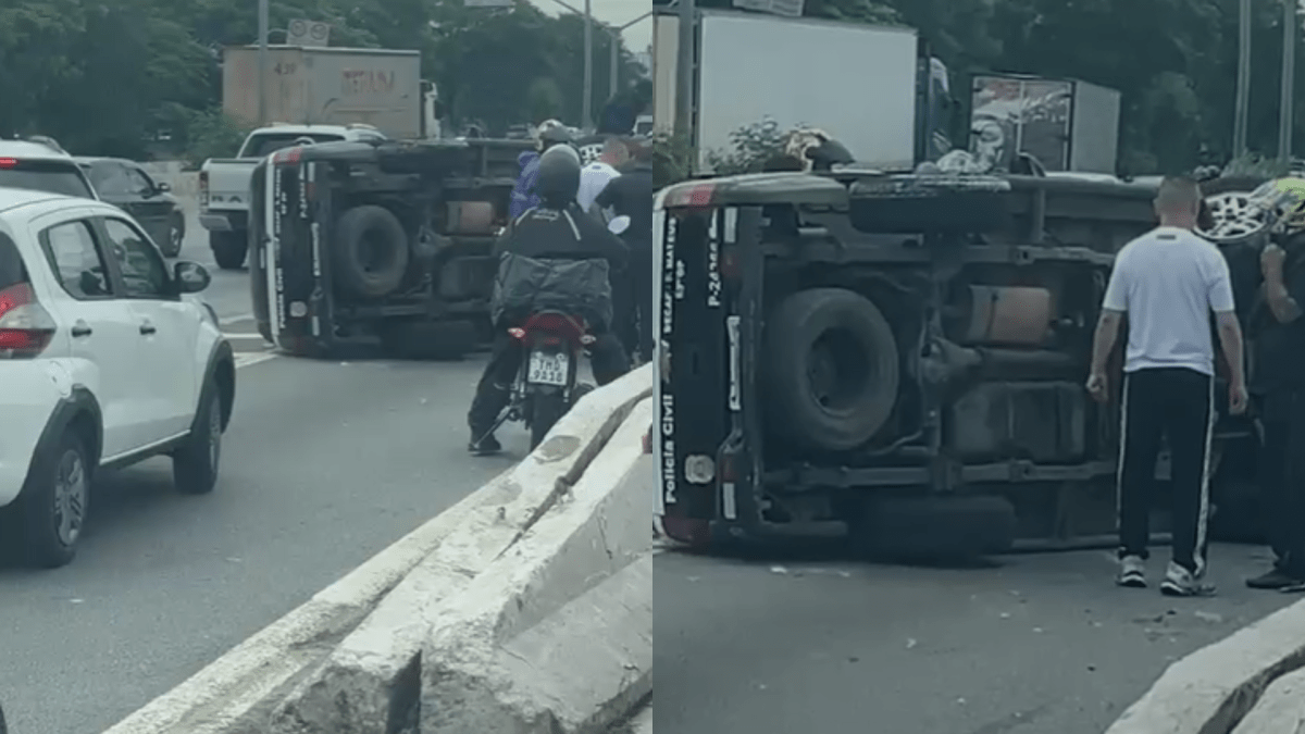 Viatura da Polícia Civil capota em SP durante escolta de presos: policiais feridos