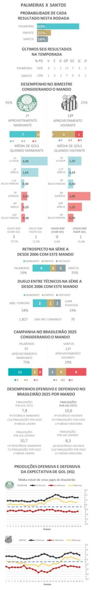 Palmeiras x Santos: Palpites, dicas e chances no Brasileirão. Palmeiras defende liderança com vantagem sobre o Santos. Desfalques podem influenciar desempenho.