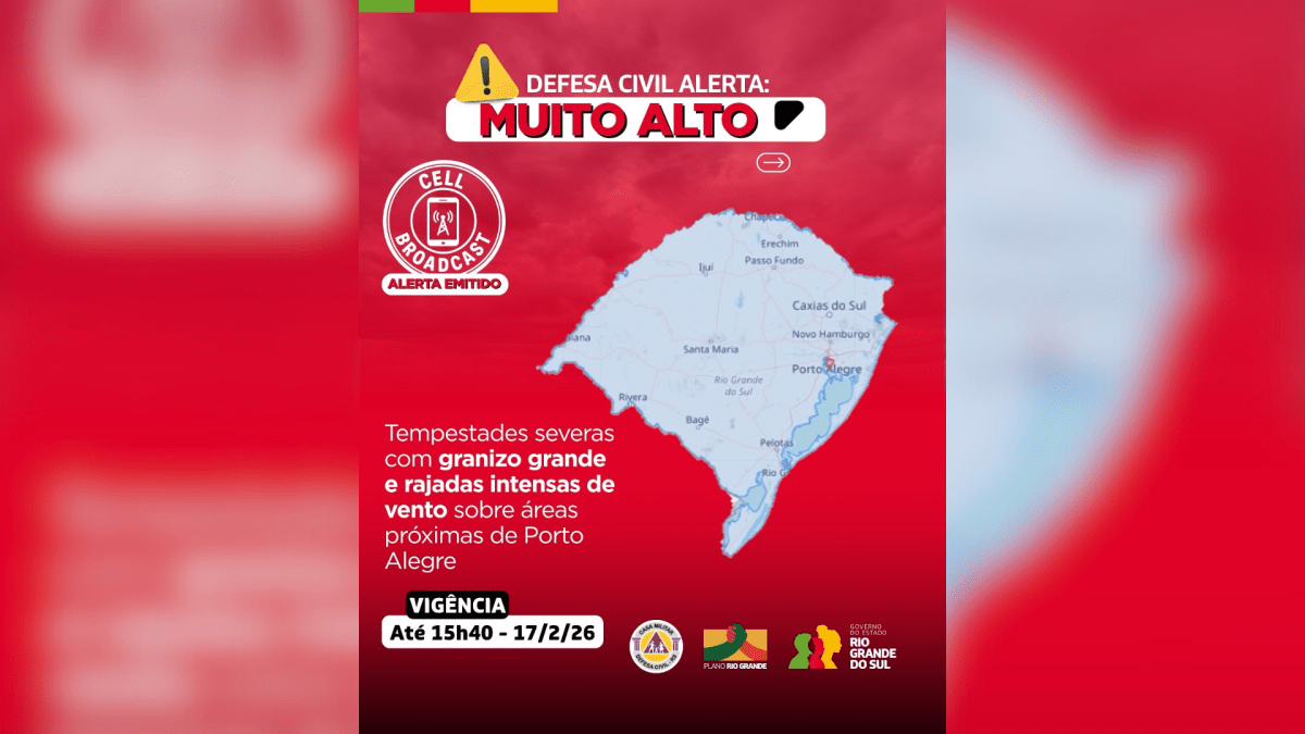 Alerta da Defesa Civil: tempestades severas com granizo e ventos fortes podem causar danos e alagamentos. População deve ficar em locais seguros e acompanhar orientações para minimizar impactos.
