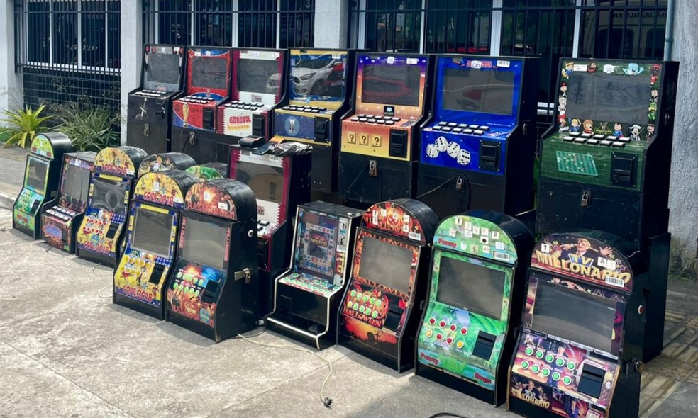 Apreensão de 57 máquinas caça-níqueis em Feira de Santana durante a Operação “Terminal Zero”. Polícia Civil combate tráfico de drogas e crimes patrimoniais na região. Medidas legais adotadas.