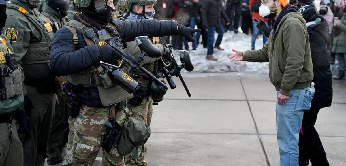 Manifestantes anti-ICE expulsam extrema direita em protesto em Minneapolis após morte de Renee Good. Tensões migratórias nos EUA em destaque.
