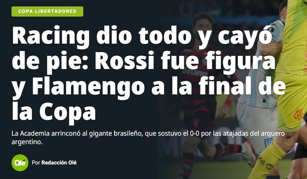 Flamengo segura empate com Racing e garante vaga na final da Libertadores. Atuação segura de Rossi e liderança de Filipe Luís são destaques nos jornais argentinos e espanhóis. Mengão busca tetracampeonato histórico.