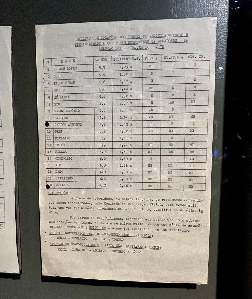 Exposição revela testes físicos inéditos da Seleção de 1970: Jairzinho melhor que Pelé?