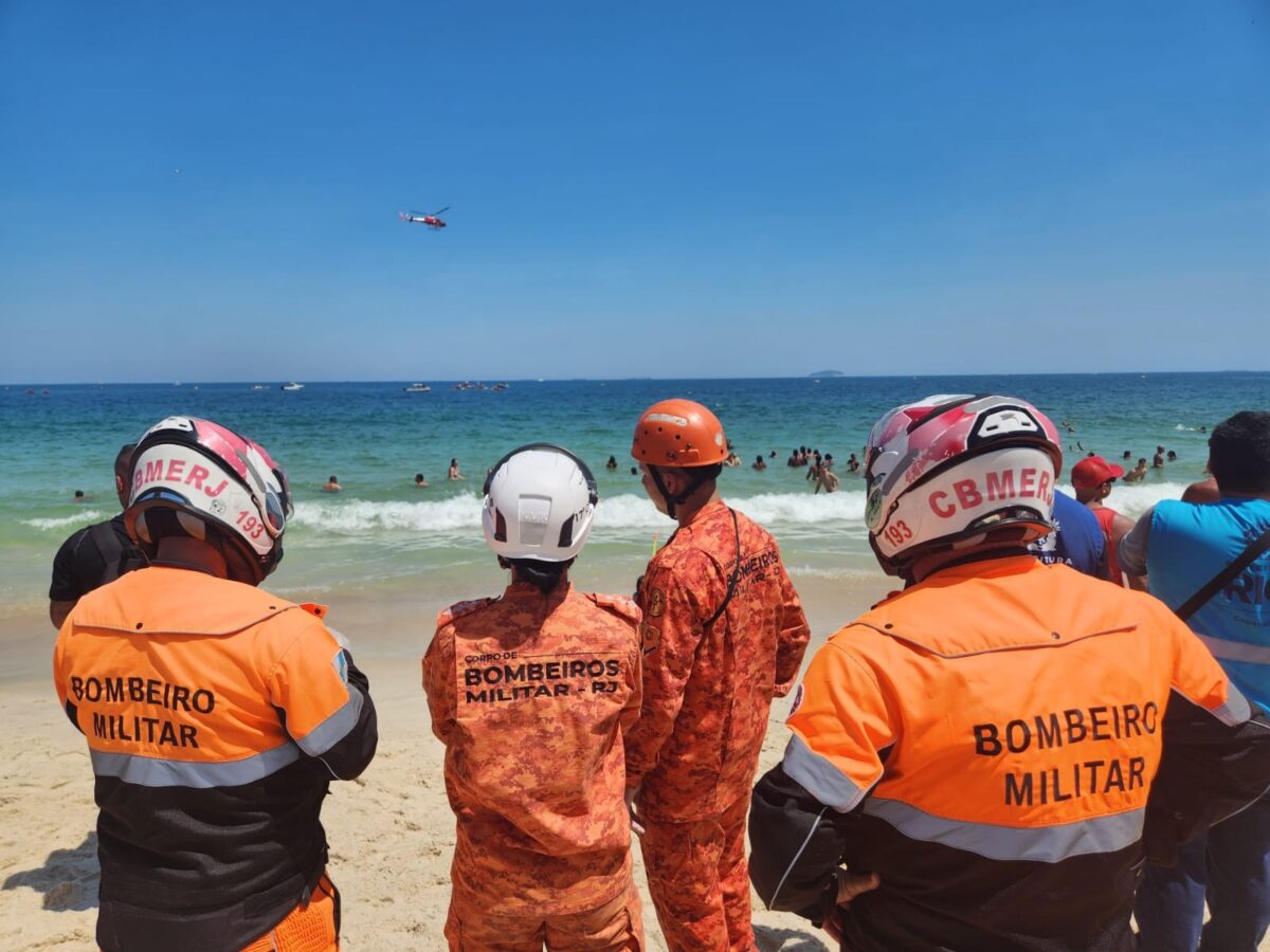 Acidente com ultraleve na Praia de Copacabana: Bombeiros em operação de resgate no mar