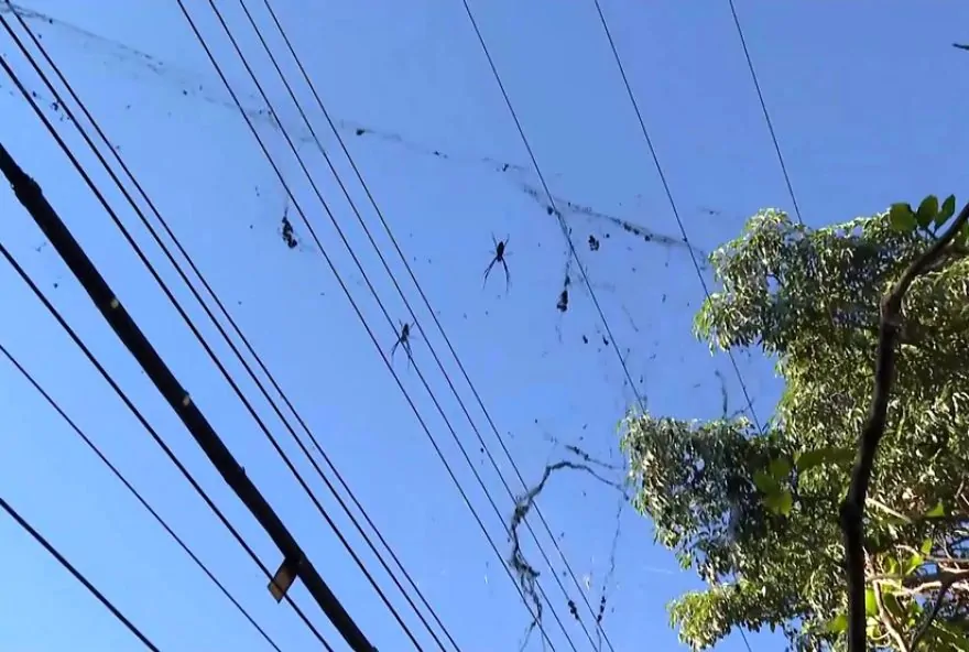 Quem transitava pela Avenida Olinto Meireles, na Região do Barreiro de Belo Horizonte, se deparou com uma cena inusitada: teias gigantes de aranhas espalhadas pelos postes e fios de condução de energia da via. Essa coleção de aranhas tecendo teias coletivas proporcionou um espetáculo para os pedestres que passavam pelo local. A espécie responsável por essa atividade é a Parawixia bistriata, comum no Sudeste do Brasil e não representando risco à saúde humana.