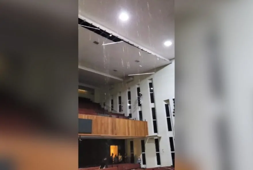 A violenta tempestade que atingiu São José do Rio Preto (SP) foi responsável pela queda de parte do forro de gesso do teto da igreja durante a celebração do culto no domingo (26). Um vídeo gravado no momento exato do acidente capturou o quase acerto do pastor, que escapou por pouco de ser atingido.