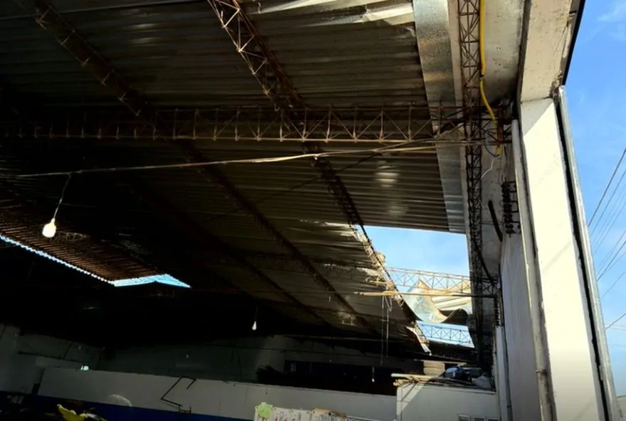 Árvores foram arrancadas do chão e casas ficaram destelhadas em menos de meia hora de chuva. O Inmet mantém alerta de tempestades até domingo (13).