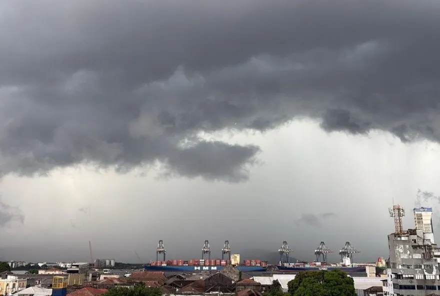 Temporal atinge Baixada Santista com chuva forte, raios e alerta para áreas de risco