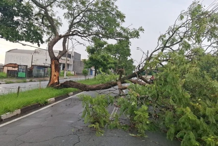 Segundo o órgão, foram registradas pelo menos cinco quedas de árvores até 14h25, sendo três no Jardim Chapadão (região Norte), uma na Vila Itapura (região Leste) e outra na Vila Georgina (região Sul).