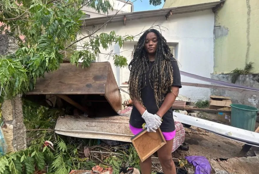 “A casa de Daniela foi completamente destruída — só ficou a estrutura. Dos móveis e eletrodomésticos, não deu para salvar nada. Na tarde deste sábado (25/1), ela e vizinhos faziam uma força tarefa para retirar os destroços, enlameados, que ali ainda estavam. A jovem mora com a mãe de 64 anos, que felizmente não estava em casa no momento da tragédia.
