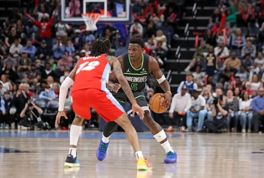direto na briga por uma vaga nos playoffs da NBA nessa quinta-feira (10/4), no FedExForum, em Memphis. Com show de Anthony Edwards e Julius Randle, a franquia de Minneapolis conseguiu aplicar um terceiro período dominante com 52 pontos, suficiente para abrir vantagem que garantiu vitória por 141 a 125.