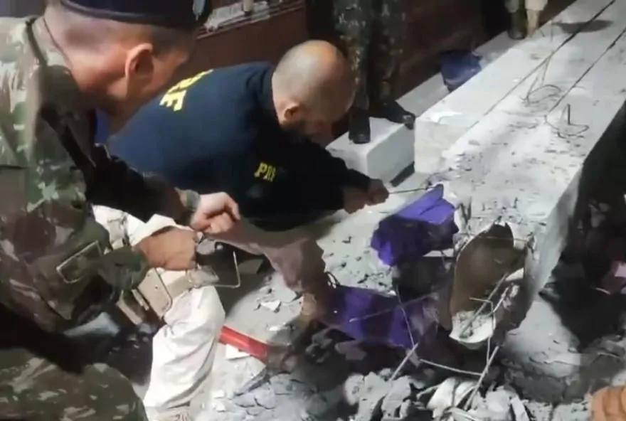 Em imagens divulgadas pela PRF, é possível ver a droga sendo retirada das estruturas de concreto por policiais rodoviários federais e militares do Exército, que foram acionados para auxiliar.