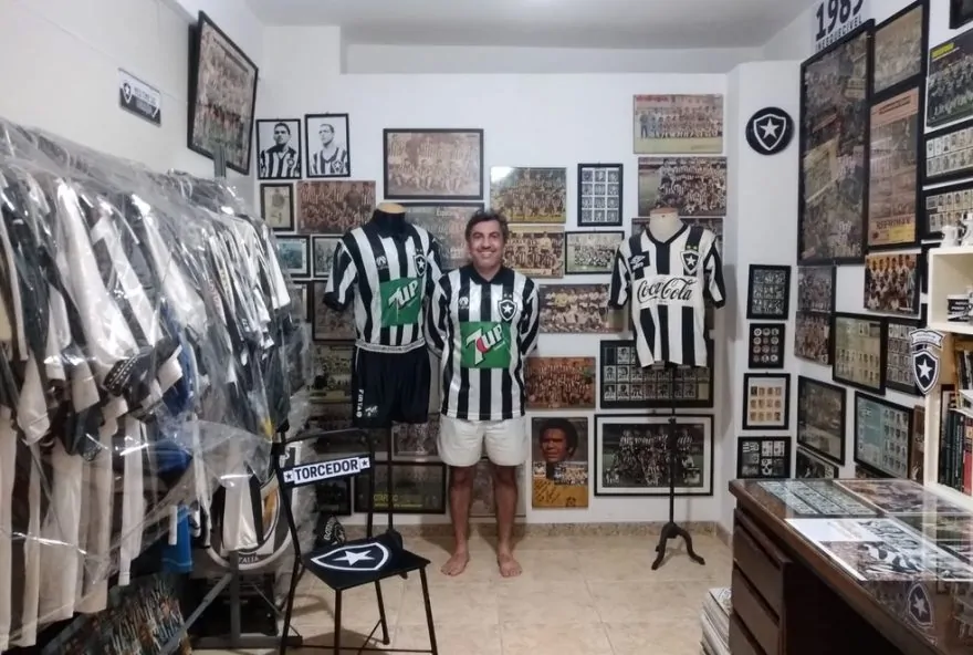 A coleção começou a ganhar corpo a partir da paixão pelo alvinegro. Ao todo, são mais de 300 camisas, muitas delas recebidas como presente de jogadores que passaram pelo Glorioso.