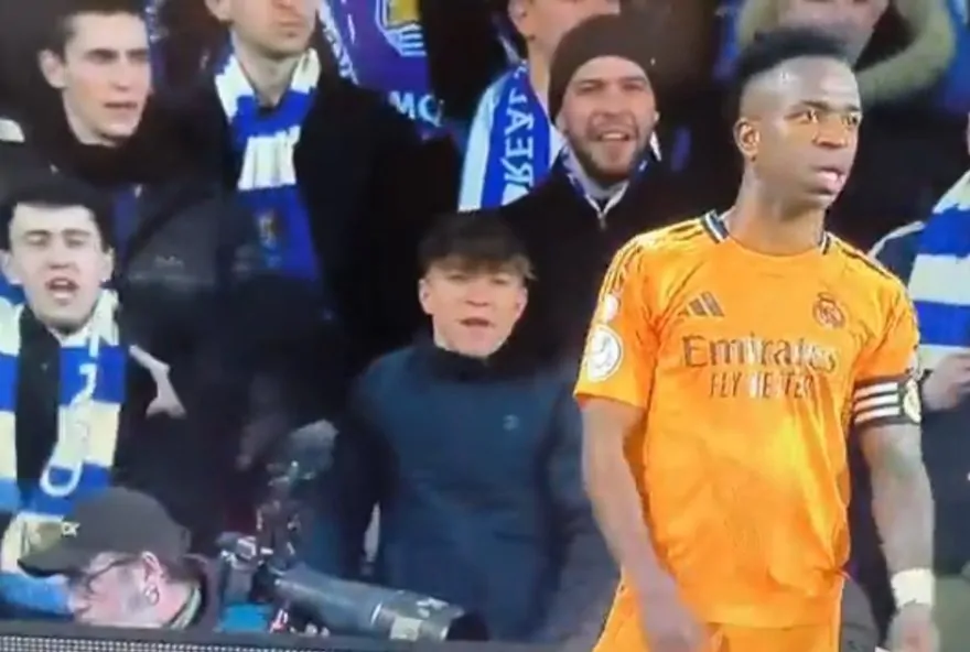 Torcedor do Real Sociedad hostiliza Vini Jr. com gesto racista