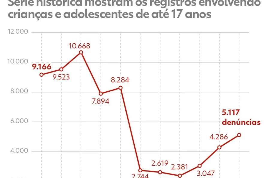 No mesmo ano, apenas o Disque 100 recebeu cerca de 4,2 mil denúncias envolvendo trabalho infantil, segundo o Painel de Dados do Ministério dos Direitos Humanos e da Cidadania (MDHC). Em 2025, esse número foi ainda maior, com o registro de mais de 5,1 mil denúncias, alta de 19,4%.