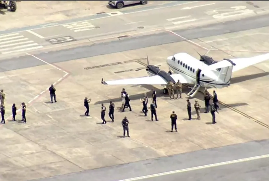 Traficante mineiro Douglas de Azevedo Carvalho, conhecido como Mancha, desembarcou na tarde desta terça-feira (17) em Belo Horizonte, após ser preso no último domingo (15) em Santa Cruz de la Sierra, na Bolívia, onde estava foragido. Ele foi trazido em uma aeronave da Polícia Federal em um voo que fez parada em Brasília, antes do desembarque em BH.