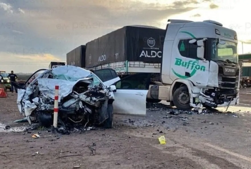 fatais de um acidente entre um Chevrolet Onix branco e uma carreta Scania, que aconteceu no fim da tarde desse domingo (9/2), na BR-163, em Nova Mutum, a 243 km de Cuiabá, Mato Grosso. Uma mulher de 38 anos, mãe das crianças, ficou ferida e está internada.