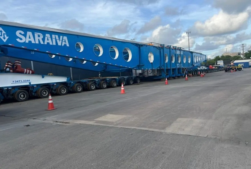 O transporte desta estrutura gigante é feito a uma velocidade média de 5 a 6 quilômetros por hora, conforme informado pela empresa responsável. A saída do transformador do Porto de Suape estava programada para às 23h da segunda-feira (28), e o comboio seguirá pela PE-09 até acessar a BR-101, previsto para as 7h desta terça-feira.