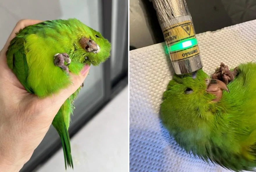 Veterinária mostra tratamento a laser em ave que sofreu trauma cranioencefálico;
