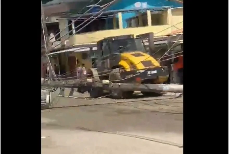 O incidente ocorreu nesta segunda-feira (25) no bairro de Jardim Paraíso, localizado em Nova Iguaçu, na Baixada Fluminense. O trator colidiu com o poste, ocasionando um efeito dominó que resultou na queda de outros postes da região. A força do impacto fez com que os cabos elétricos fossem puxados, o que contribuiu para a interrupção no fornecimento de energia.