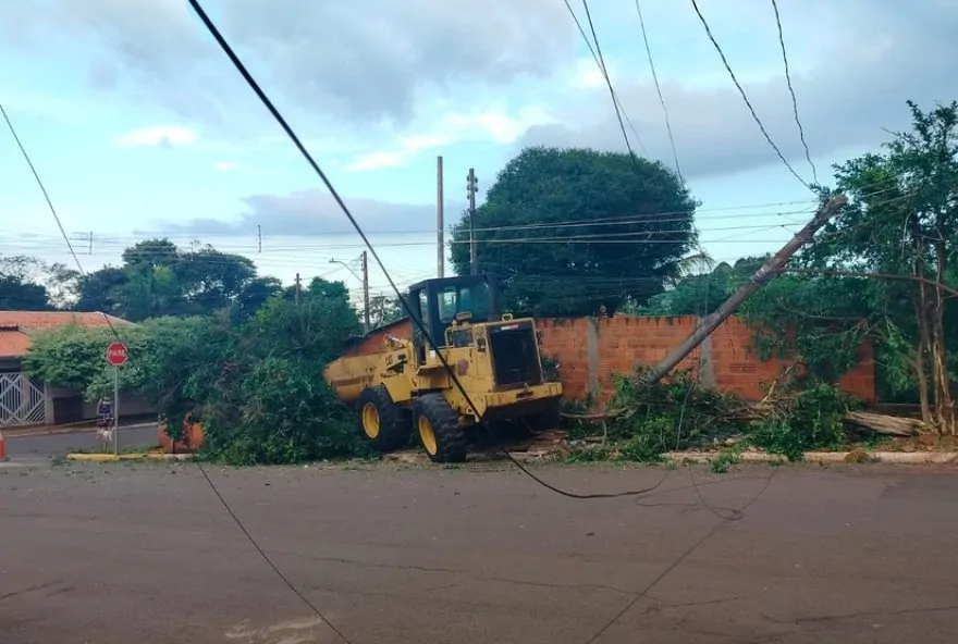 Um trator desgovernado derrubou um poste da rede de energia elétrica e iluminação pública, na tarde desta quinta-feira (17), no Centro, em Nantes (SP).