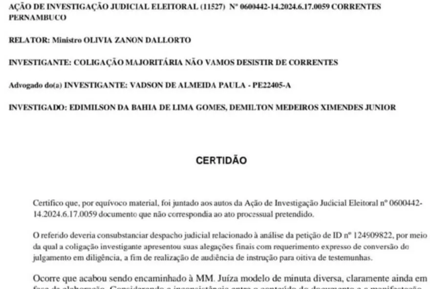 Entendendo o caso, o documento divulgado no dia anterior mostrava uma decisão do Tribunal Regional Eleitoral que cassava o mandato do prefeito e vice de Correntes, assinada pela Juíza Olívia Zanon Dall’Orto Leão. A ação reconhecia abuso de poder econômico, abuso de poder político e captação ilícita de sufrágio pelos investigados.