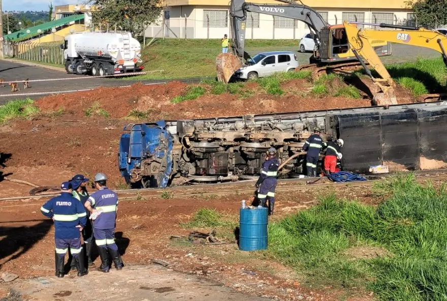A corporação também conta que houve um rompimento no tanque de combustível do trem e parte do óleo diesel vazou no solo.