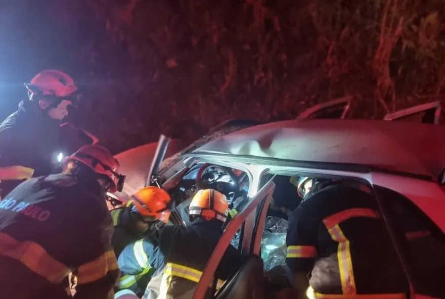 Uma colisão entre carros resultou em três feridos na Rodovia Rio-Santos, em Ubatuba. Dois homens e uma criança foram resgatados pelos bombeiros, sendo que uma das vítimas ficou presa nas ferragens do veículo. O acidente ocorreu na noite de terça-feira (15), no Litoral Norte de São Paulo, e mobilizou equipes de resgate do Corpo de Bombeiros e do Samu. A batida aconteceu por volta das 18h45, próximo ao bairro Itamambuca, envolvendo dois veículos em uma colisão frontal.