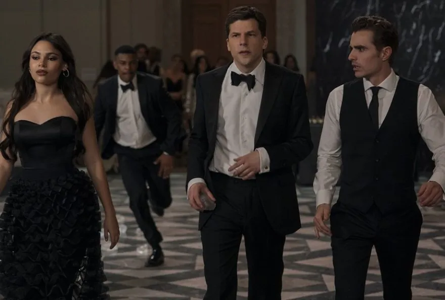 Embora não seja um grande diretor, Ruben Fleischer, do primeiro “Venom” e “Zumbilândia” (também estrelado por Eisenberg e Harrelson), conduz a trama com segurança e cria momentos que vão, gradativamente, deixando o público cada vez mais entretido com o longa. Um bom exemplo disso é uma cena feita em plano-sequência (sem cortes) em que os Cavaleiros e seus novos integrantes mostram do que são capazes de fazer com suas habilidades.