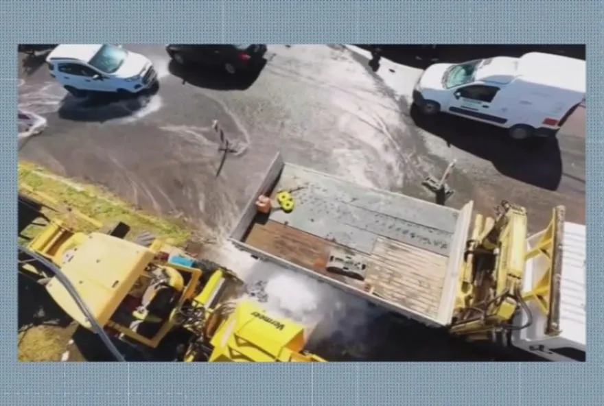 Um morador protestou jogando uma rede de pesca no meio do alagamento. A previsão é que o serviço seja concluído em até 24 horas.