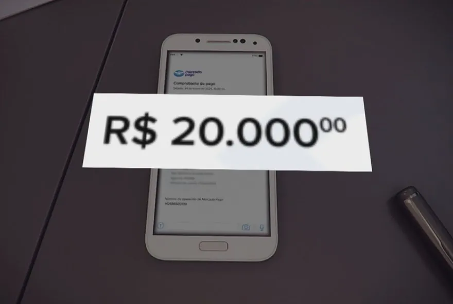 O comprovante do PIX mostra a transferência no valor de R$ 20 mil.
