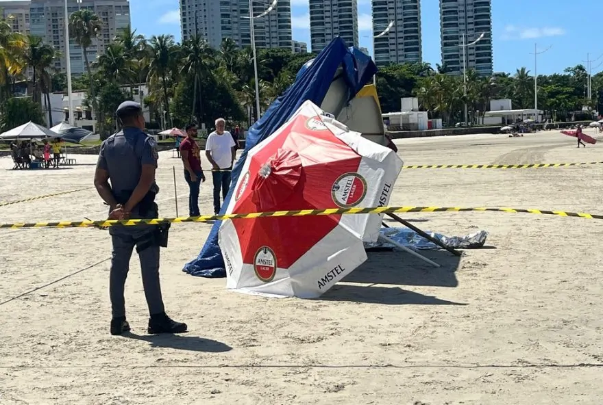 Homem morreu após ser baleado na praia da Enseada, em Guarujá, DE — Foto: Yasmin