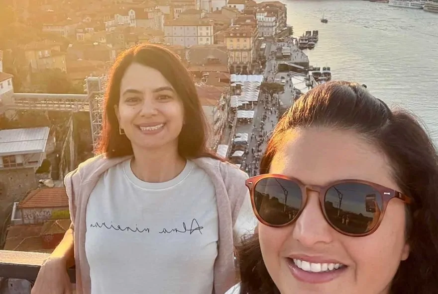 A servidora pública Luísa Lages (à esquerda) com a irmã, a arquiteta Flávia, em passeio por Porto no dia anterior ao apagão que atinge parte de Portugal e Espanha nesta segunda-feira (28) — Foto: Reprodução