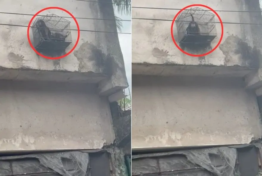 Morador de Cubatão (SP) fixou gaiola na parte externa do sobrado. Segundo ele, o