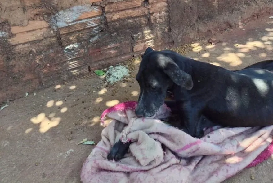 Cão foi encontrado em situação de maus-tratos no centro de Teodoro Sampaio, no interior do estado. Animal apresentava miíase e carrapatos