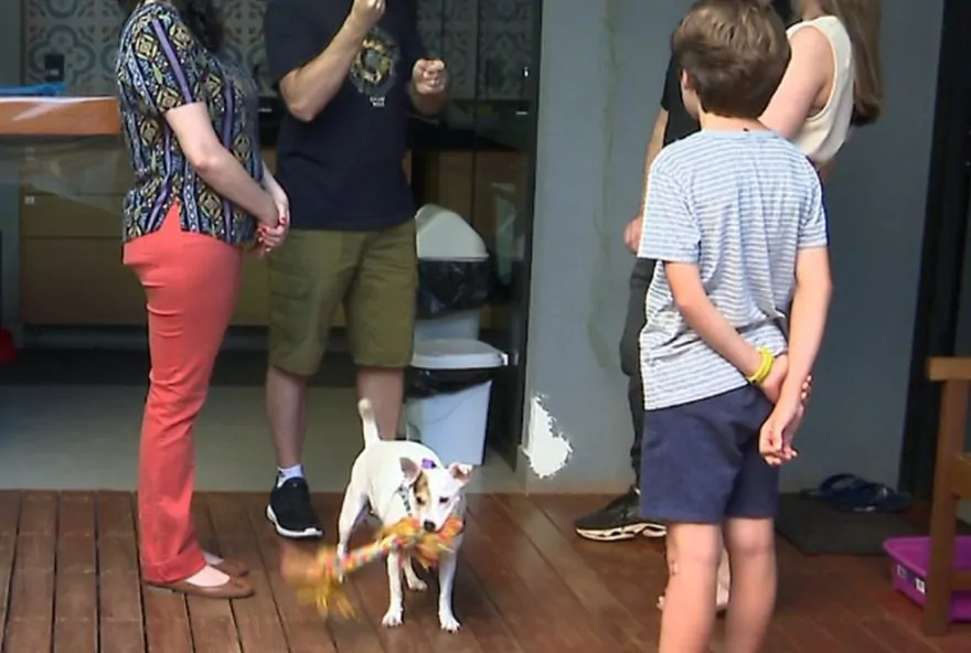 “A gente começou a ensinar. Por exemplo, colocava a coleira e levava ela para passear e a gente fazia uma repetição. A gente dava algum tipo de comidinha, um petisco. E aí a gente fazia o sinal da patinha. Se ela desse a patinha, a gente dava o petisco. Precisou de bastante paciência, para que a gente fosse ensinando e repetindo”, conta Camila, em entrevista à EPTV, afiliada da TV Globo.
