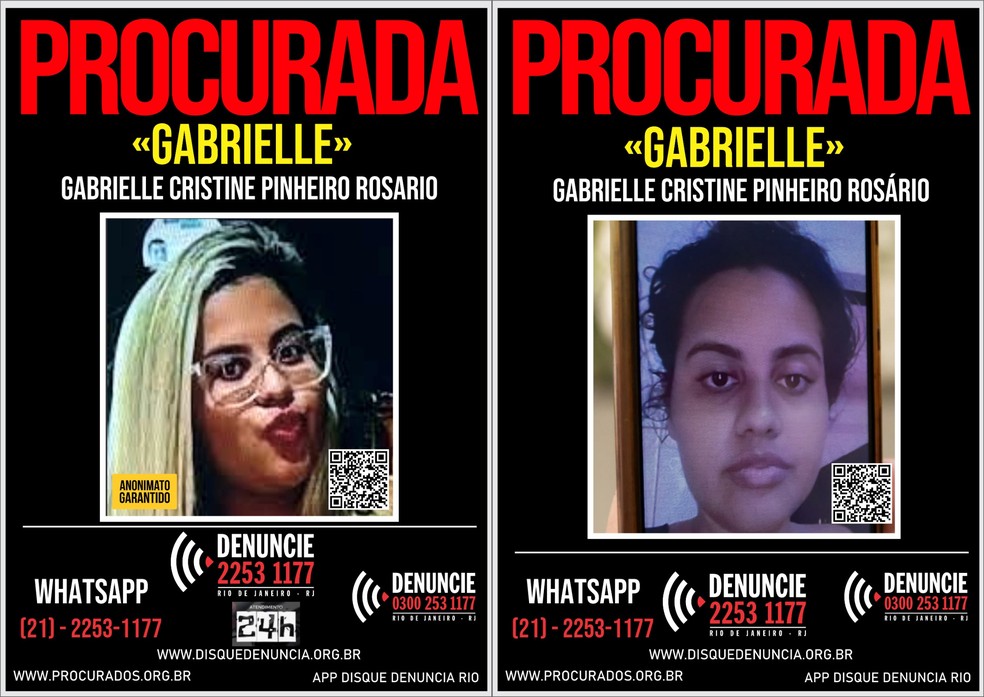 Após a morte de Laís Pereira em Sepetiba, polícia busca Gabrielle Cristine como mandante. Disque Denúncia divulga cartaz e investigação segue.