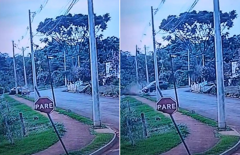 Motorista bate carro em poste ao fazer curva em Bonfim Paulista; vídeo mostra veículo rodando no ar após impacto. CPFL substitui estrutura de energia.