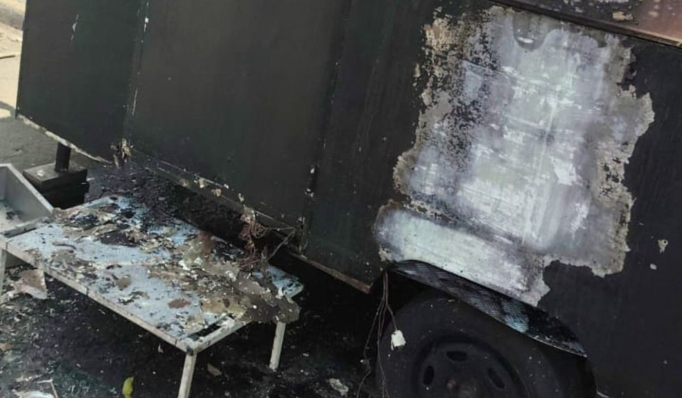 Flagrante: pessoa ateia fogo em trailer de lanches em Americana – Vídeo mostra momento do crime
