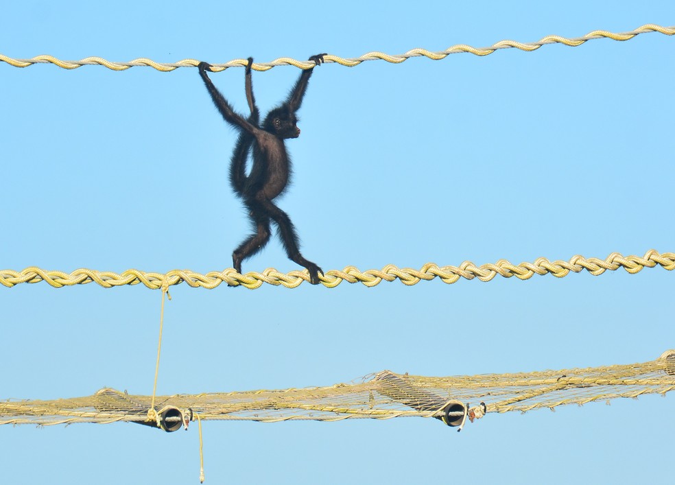 Filhote de macaco-aranha atravessa ponte de dossel em Alta Floresta (MT), reforçando a importância da conservação. Confira o registro emocionante! #Conservação #MacacoAranha #AltaFloresta #PonteDeDossel