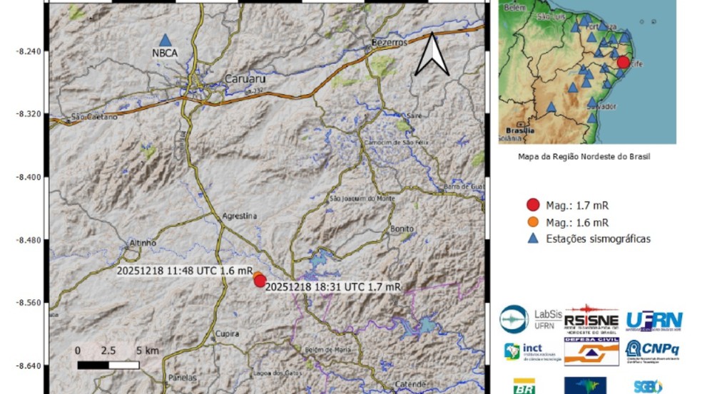 Oito eventos sísmicos são registrados em Agrestina, com maior magnitude de 1,7 na escala Richter. Monitoramento foi realizado pela UFRN. Saiba mais!
