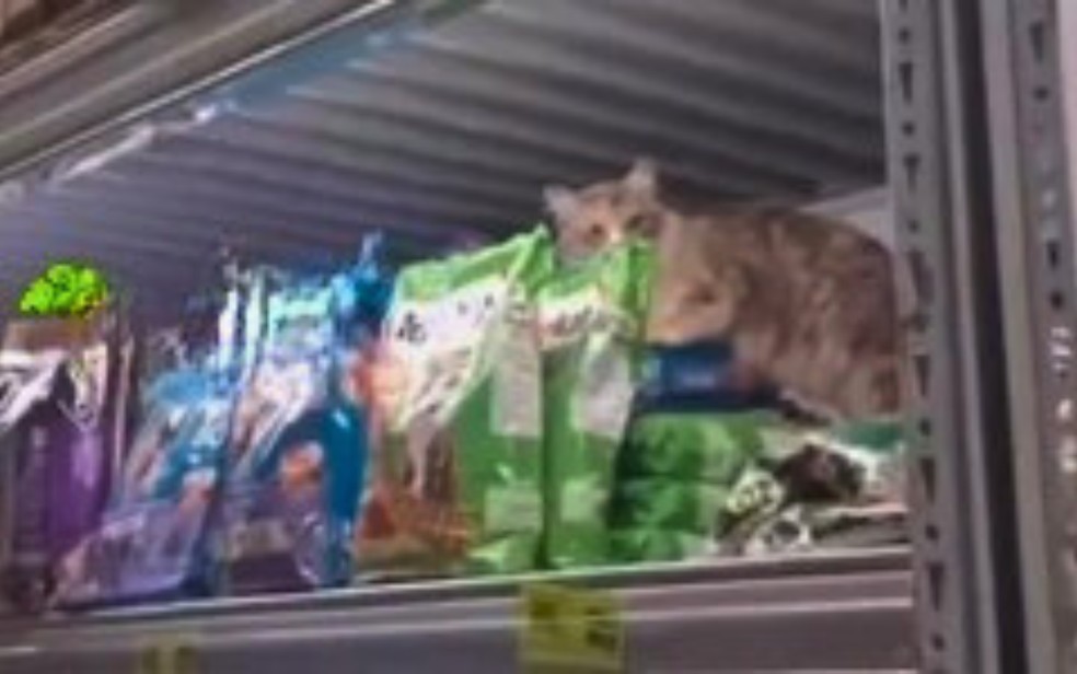 Gato diverte web ao ser flagrado comendo em supermercado de Goiânia: vídeo viral