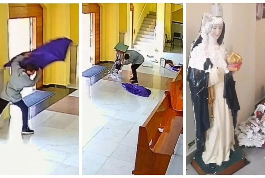 A DE anunciou nesta segunda-feira (7) que analisa as imagens das câmeras de segurança da Paróquia Bom Jesus das Oliveiras, na Zona Leste de São Paulo, para identificar e prender o responsável pela queda de várias imagens sagradas do templo. O ataque aconteceu na manhã deste domingo (6), na Paróquia Bom Jesus das Oliveiras, no Jardim das Oliveiras, região do Itaim Paulista. O pároco lamentou o vandalismo e chamou de ‘ato insano contra as imagens sagradas’.