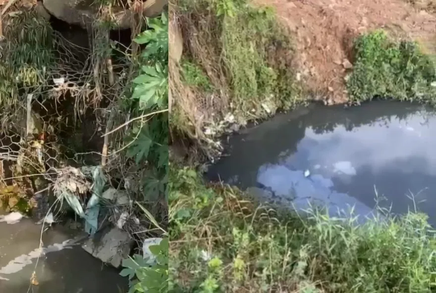 Vazamento de esgoto polui córrego e causa forte odor em São Miguel Arcanjo