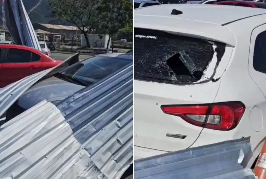 Telhado cede com ventania e atinge dezenas de carros em refinaria da Petrobras em SP; VÍDEO